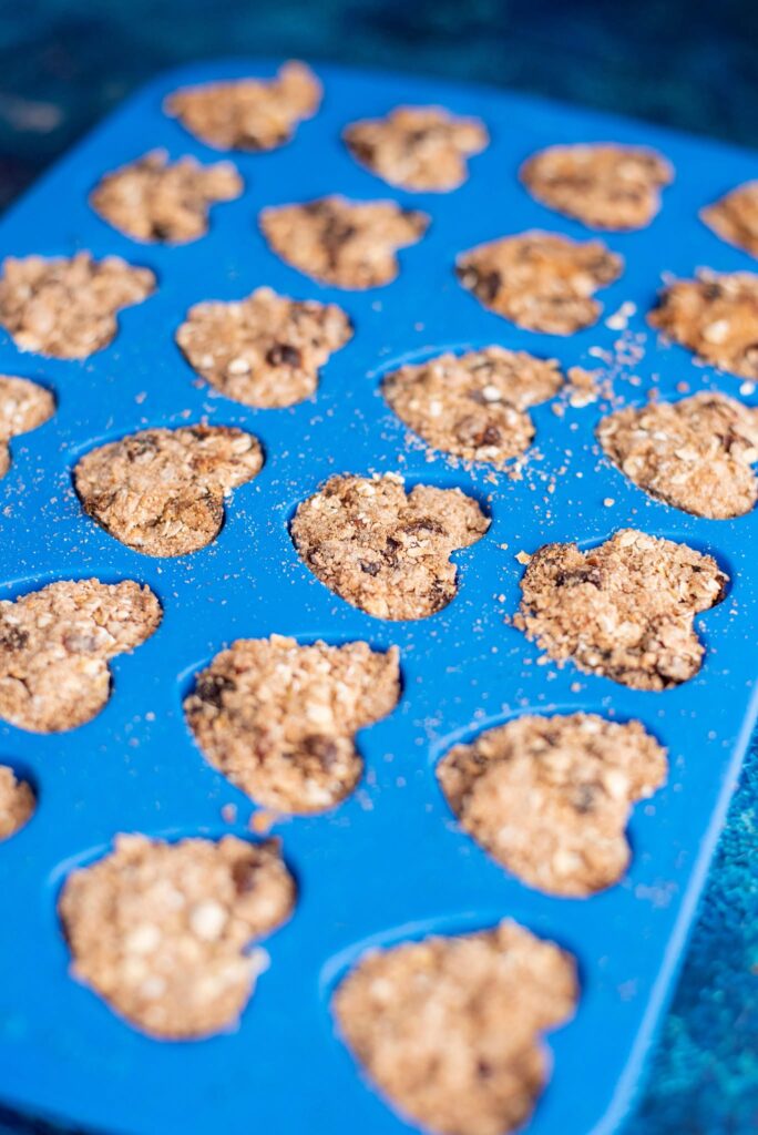 - Bake the treats: Place your mold onto a baking sheet pan and bake them for about 40 minutes, or until they turn golden brown and firm up.