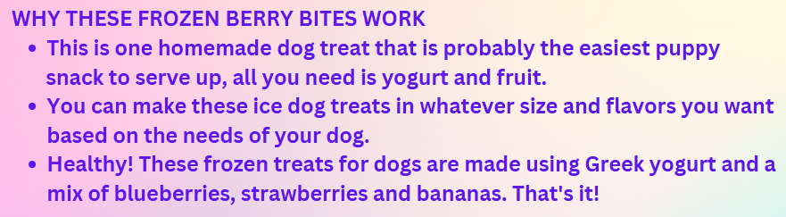 If you are lucky enough to have a pool and a fun-loving dog who is not afraid of the water, you will LOVE these little frozen yogurt bites for your pooch.
