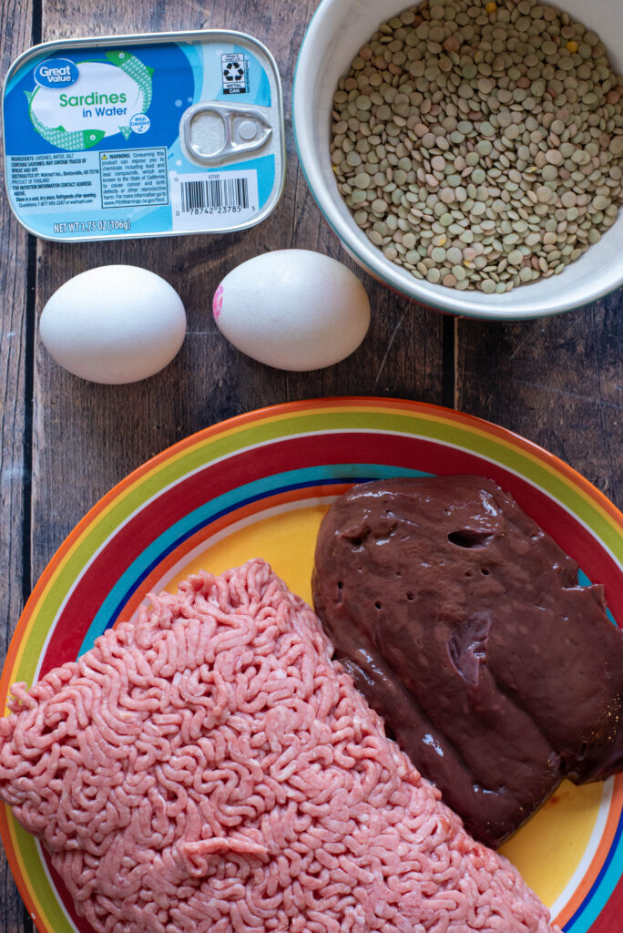 Ingredients for this Slow Cooker Dog Food with Ground Beef, Liver & Sardines